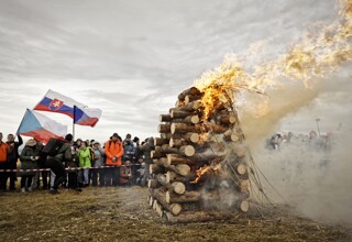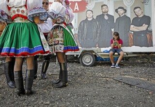 Series description: Czech–Slovak Border – Separately Together is primarily a photographic series that follows the lifestyle and manifestations of material culture, and the changes in Czech and Slovak society 30 years after the break-up of Czechoslovakia. It captures often absurd scenes in the background of cultural events, anniversaries or chance encounters – things that unfold in the second plane of what is happening. At the same time, it is a photographic document recording the contemporary life of people as well as the landscape, architecture and folk traditions of both nations that once lived together in a single state. I have been working on the project since 2021; the actual photographing takes place within a 50 km strip on both sides of the border, i.e. in Moravia and in Slovakia, along its entire length from the confluence of the Dyje and Morava rivers to the tripoint near Hrčava.