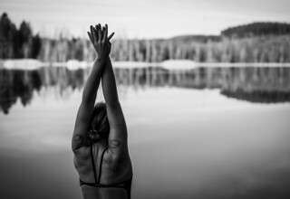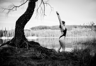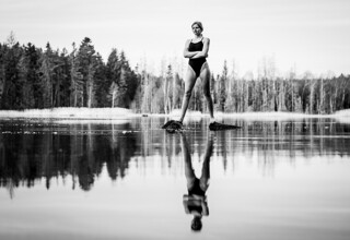 Series description: Portrait of Czech long-distance swimmer Andrea Klementová, Velkopařezitý Pond, Vysočina Region, April 13, 2025, near the village of Řásná, Czech Republic.