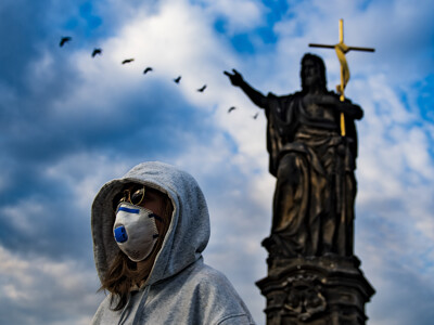 BŘEZEN 2020 – Roman Vondrouš / ČTK / Žena s respirátorem na Karlově mostě