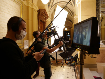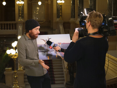 Do poslední chvíle jsme odkládali rozhodnutí o jeho on-line podobě. Stále se třepotala jiskřička naděje, že třeba najednou čísla nakažených klesnou a akce se budou moci konat… Nebylo nám přáno. Ceremoniál tedy on-line. Oslovili jsme již našeho tradičního moderátora Vladimíra Kroce a o natáčení a produkci se postaral Jakub Mahdal se svým týmem, který poslední roky pro Czech Press Photo připravuje nominační videa. Spolupráce s nimi byla skvělá. Profíci. Profíci v prostorách národního muzea prezentují profesionální fotografie. Dokonalá kombinace. Díky jim za spolupráci.