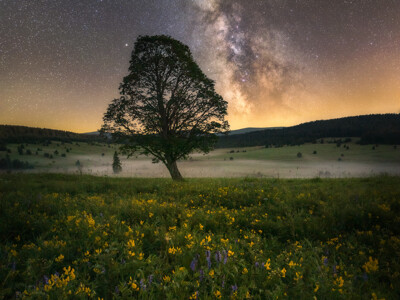 Na fotografii je javor na Kepelském Zhůří pod pásem Mléčné dráhy. Tyto staré stromy, kterých je na místě několik, jsou pozůstatkem po zbourané vesnici. Nyní jsou zde pastviny pro skot, takže louky nezarůstají vyšší vegetací a celé léto kvetou. Na Šumavě jsou nejlepší podmínky na pozorování a fotografování hvězd v Česku, Mléčná dráha je zde výborně viditelná, ale i tak je na horizontu patrné světelné znečištění z bavorských měst.
