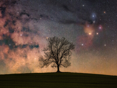 Na snímku je jasan v CHKO Křivoklátsko rámovaný částí centra naší galaxie, ze které vybíhá mlhovina Temný kůň, a dalšími objekty. V mlhovině vpravo září hvězda Antares a další barevné mlhoviny. Oblast vpravo se jmenuje Rho Ophiuchi komplex, ale také se jí říká kosmická klenotnice.