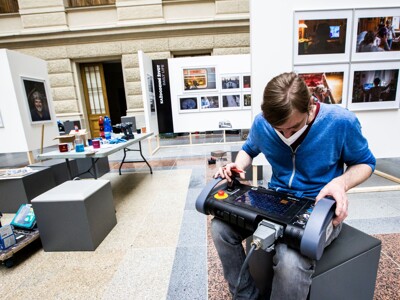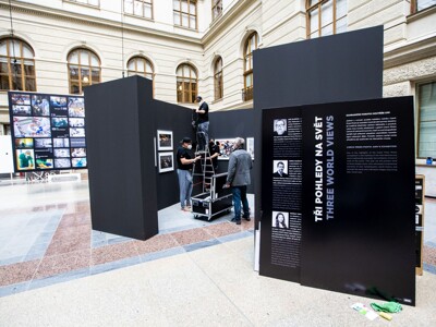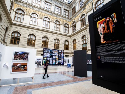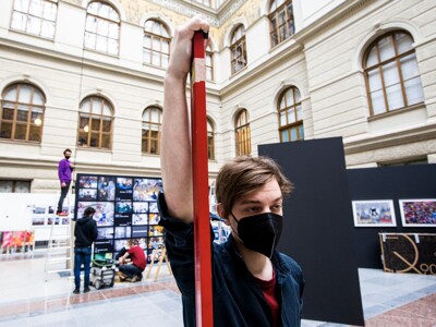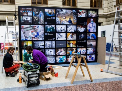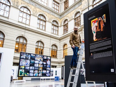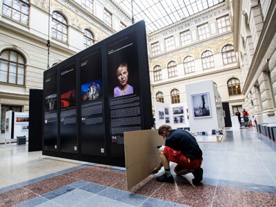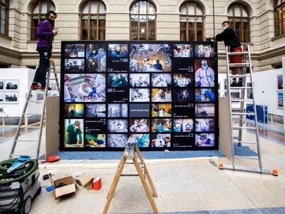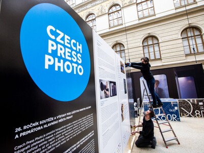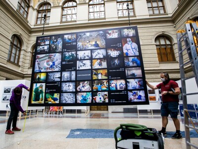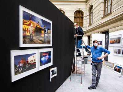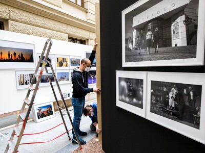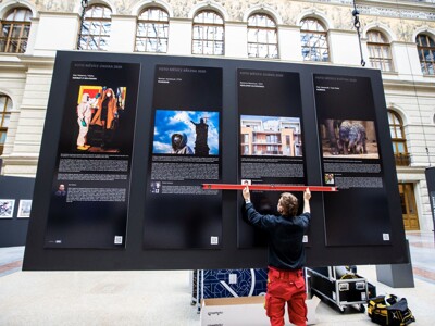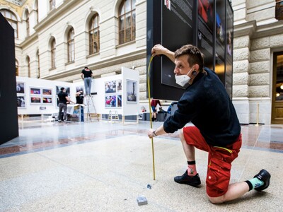 V západní dvoraně Národního muzea finišuje instalace výstavy Czech Press Photo. A musíme uznat, že fotografie Národnímu muzeu sluší.