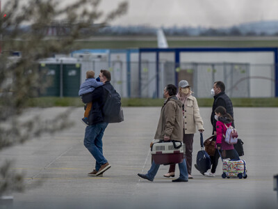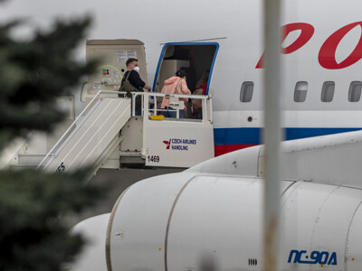 U jejich odjezdu byl i fotograf Martin Divíšek (EPA):