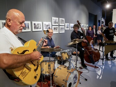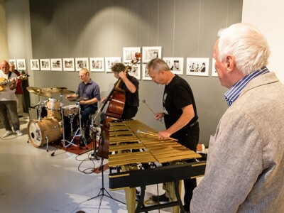 1. Poprvé se v galerii představil jazz a to nejen proto, že Petr Brukner jazz miluje. Od příštího měsíce totiž začne cyklus jazzových koncertů JAZZ V GALERII. Spojení umění a hudby. Co víc si přát... Na vernisáži zahrál Zeman Krapl quartet. A nádherné zvuky vibrafonu zní návštěvníkům v uších ještě teď.