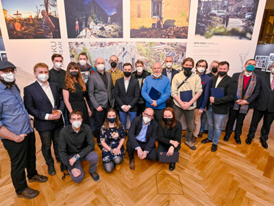 Společný snímek oceněných autorů pomyslně výstavu otevřel.
