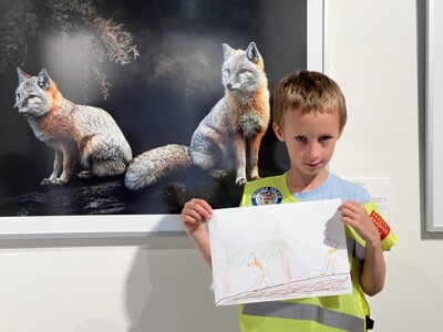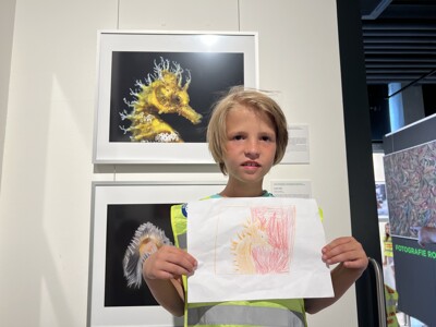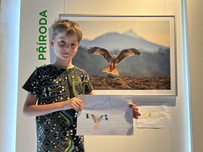 Uspořádali jsme pro žáky 2. třídy ze ZŠ na Hanspaulce přírodovědno – foto – výtvarný workshop. Jak probíhal? Nejdříve je Veronika Souralová provedla výstavou Czech Nature Photo a vyprávěla příběhy, které se za snímky přírody – zvířat, rostlin a krajiny ukrývají. Bylo skvělé a překvapivé vidět, kolik informací děti o přírodě znají a jak skvěle reagují! Poté si každý vybral fotografii z výstavy, která ho nejvíce zaujala a nakreslil podle něj obrázek. A pak došlo na focení. Portrét s vlastním výtvarným dílem před fotografií, která se stala předlohou. Vytištěný snímek si děti pyšně odnesly domů a nám v galerii zanechaly svoje výtvarná dílka. Přijďte se podívat.