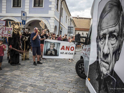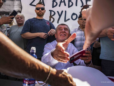 "Andrej Babiš objížděl Českou republiku obytným vozem už od jara letošního roku. Změna nastala o prázdninách, kdy se z jízdy opozičního poslance stala kampaň hnutí ANO do krajských voleb. Atmosféra mítinků houstla hlavně v druhé polovině srpna, kdy na nich začalo docházet ke střetům Babišových podporovatelů s jeho odpůrci. To vše za dohledu neoznačených policistů, kteří si vysloužili kritiku především za nepovedený zásah na mítinku v Borovanech. Tehdy zaklekli na žáka osmé třídy" popisuje situaci autor.