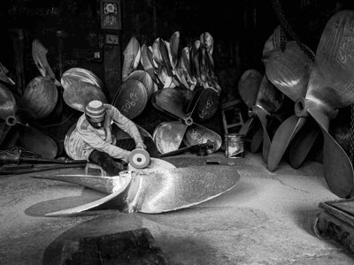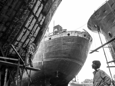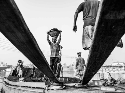 V lednu roku 2022 po covidové odmlce, vlastně ještě při odezníváni pandemie, jsem se do této země vydal znovu. Na místa již známá, ale i nová, kde jsem s jistou dávkou odvahy, blízko lidem, zachycoval to těžké břímě, které snad každý obyvatel této země na sobě nese. Mé fotografie zachycují z bezprostřední blízkosti dění při vykládce uhlí a oceli v hlavním městě Dháce, dále nabízejí pohled do loděnice ve čtvrti Hasnabad a z oblasti výroby cihel poblíž hlavního města. Pokud jako vetřelec nenarušíte rytmus jejich práce a projevíte obdiv nad jejich houževnatostí, získáte jako fotograf neuvěřitelný prostor pro různé obrazové scény."