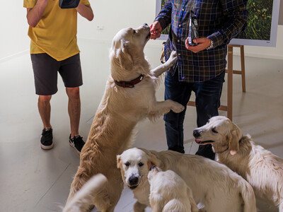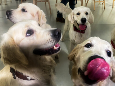 V pátek jsme v galerii Czech Photo slavnostně pokřtili novou knihu ze života zlatých retrívrů "Štěňata na prázdninách". Knihu pokřtili autoři: text - Veronika Souralova, fotografie - Dan Materna, ilustrace - Andrea Mišoňová, grafická úprava - Petr Kryštůfek, zlatí retrívři Amy, Matylda, Líla, Bella, Hailey, Bailey, Bernie, Bresson, Albert a štěně bavorského barváře Bella.