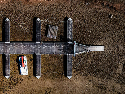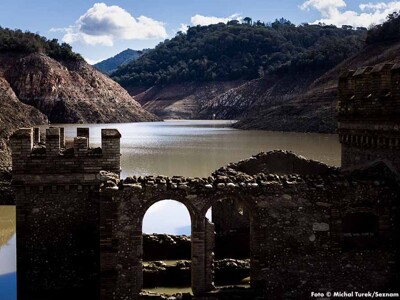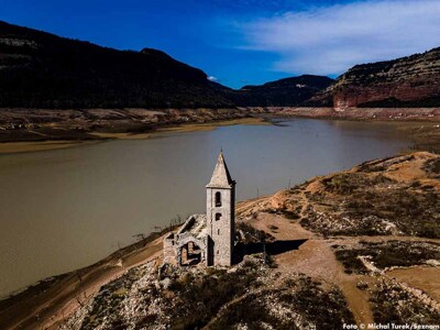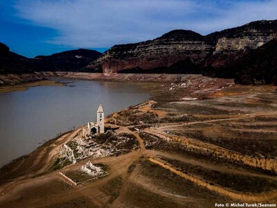 "Katalánsko trápí historické sucho. Region, který dlouhodobě usiluje o nezávislost na zbytku Španělska, nezažil vydatnější déšť už zhruba tři roky a přehrada Sau je jedno z míst, kde se nedostatek srážek ukazuje nejviditelněji. Voda v přehradě, která běžně bývala naplněna až po 80 % své kapacity, nyní nedosahuje ani 5 %. „Vždy se říkalo, že když je vidět kostelní věžička, měli bychom to brát jako varování, že přijde velmi suché léto,“ vypráví mi na místě Albert Pujol, místní ochránce přírodního parku. Přípravy na focení této přehrady jsem započal už asi týden před návštěvou, to když jsem si musel vyřídit veškerá povolení k letu s dronem. Věděl jsem totiž, že právě díky leteckým snímkům se mi lépe podaří zachytit, jak vážná situace na dně přehrady panuje.“