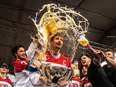 Vrcholným okamžikem se stal moment, kdy kapitán Roman Červenka byl polit obřím krýglem plzeňského piva. Na snímku připomínajícím "pivní korunu" se spojila radost, euforie a nezaměnitelná atmosféra vítězství. Sám autor o své sérii fotografií říká: