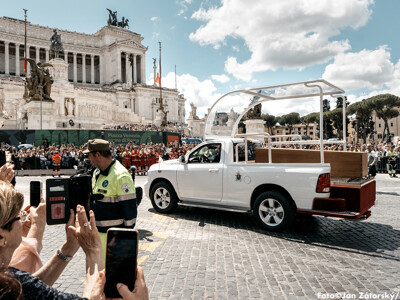 „Přestože jsem fotografoval mnoho významných světových událostí, nikdy jsem neviděl tolik fotografů na jednom místě. Získat akreditaci nutnou pro možnost fotografovat pohřeb papeže, nebylo jednoduché. Ceremoniál jsem sledoval a fotografoval ze střechy ochozu, který obepíná Svatopetrské náměstí. U basiliky sv.Petra jsme museli být již od pěti hodin ráno. Díky tomu jsem mohl zažít výjimečnou atmosféru východu slunce nad Vatikánem. Pohřeb v ulicích Říma sledovalo kolem 400 tisíc lidí.“