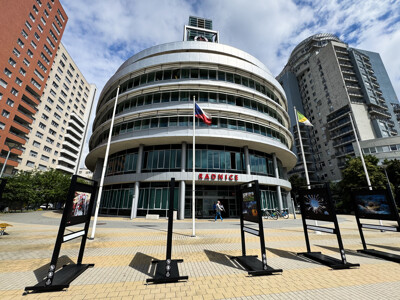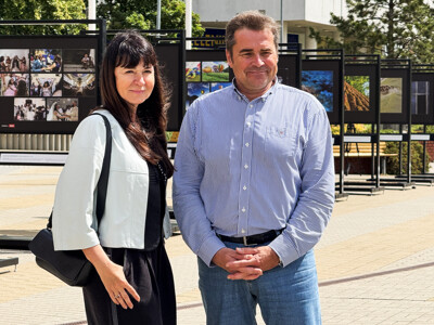 Starosta Prahy 13 David Vodrážka a Veronika Souralová, ředitelka Czech Photo, společně zahájili výstavu fotografií Czech Photo Junior, která bude na korzu před radnicí městské části Prahy 13 volně přístupná celé léto.