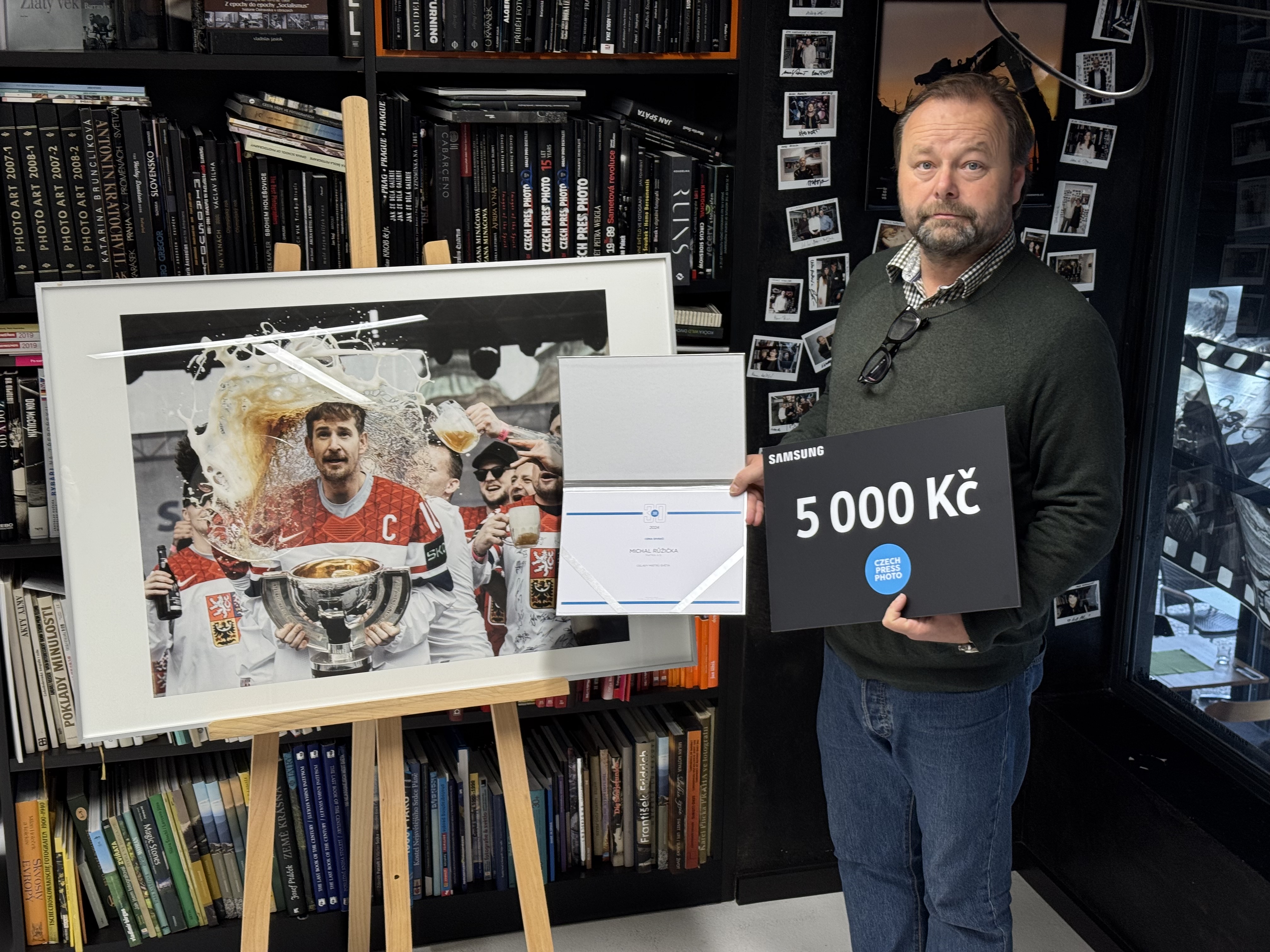 Jedná se o reflexi nejvýznamnější sportovní události konané v loňském roce v České republice, tedy Mistrovství světa v ledním hokeji. Čeští hokejoví reprezentanti se při této výjimečné příležitosti stali po dlouhé době mistry světa. Na výstavě tak byly k vidění fotografie zobrazující nejen momentky přímo ze zápasů, ale také snímky zaznamenávající euforické oslavy titulu českého týmu. Ikonickým se stal triumfální moment z pražského Staroměstského náměstí, kdy na kapitána Romana Červenku spoluhráči při bujarém oslavování vylili pivo. Díky přítomnosti mnoha fotografů, snad ze všech českých médií, byl tento okamžik zachycen z různých pohledů. Jen v soutěži Foto měsíce květen 2024 se sešlo sedm fotografií tohoto okamžiku. Porotci byl tehdy vybrán snímek Michala Růžičky, stejně jako letos návštěvníky výstavy Czech Press Photo 2024.