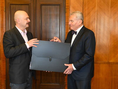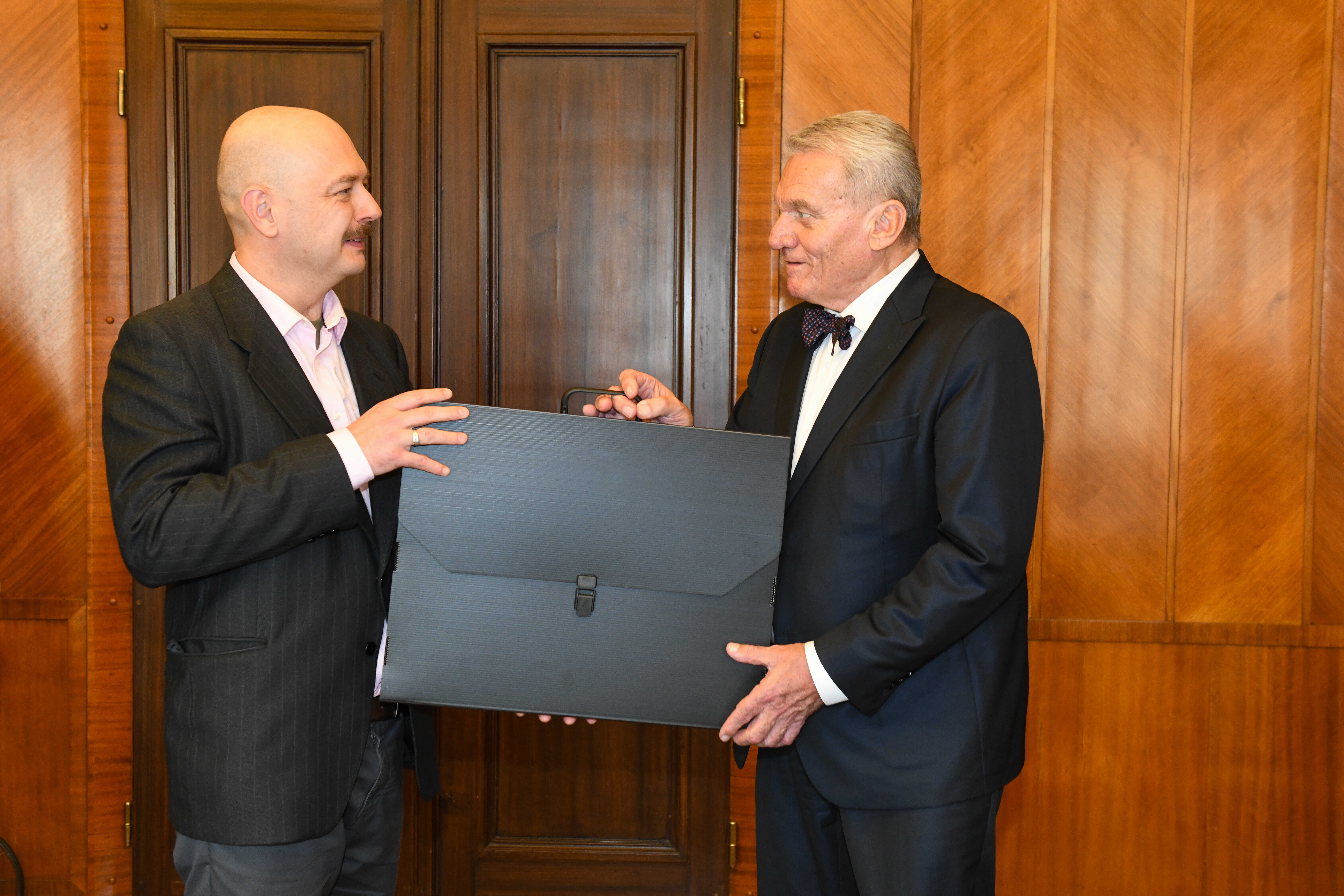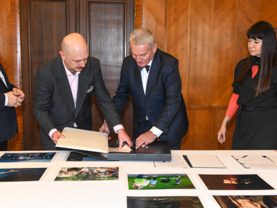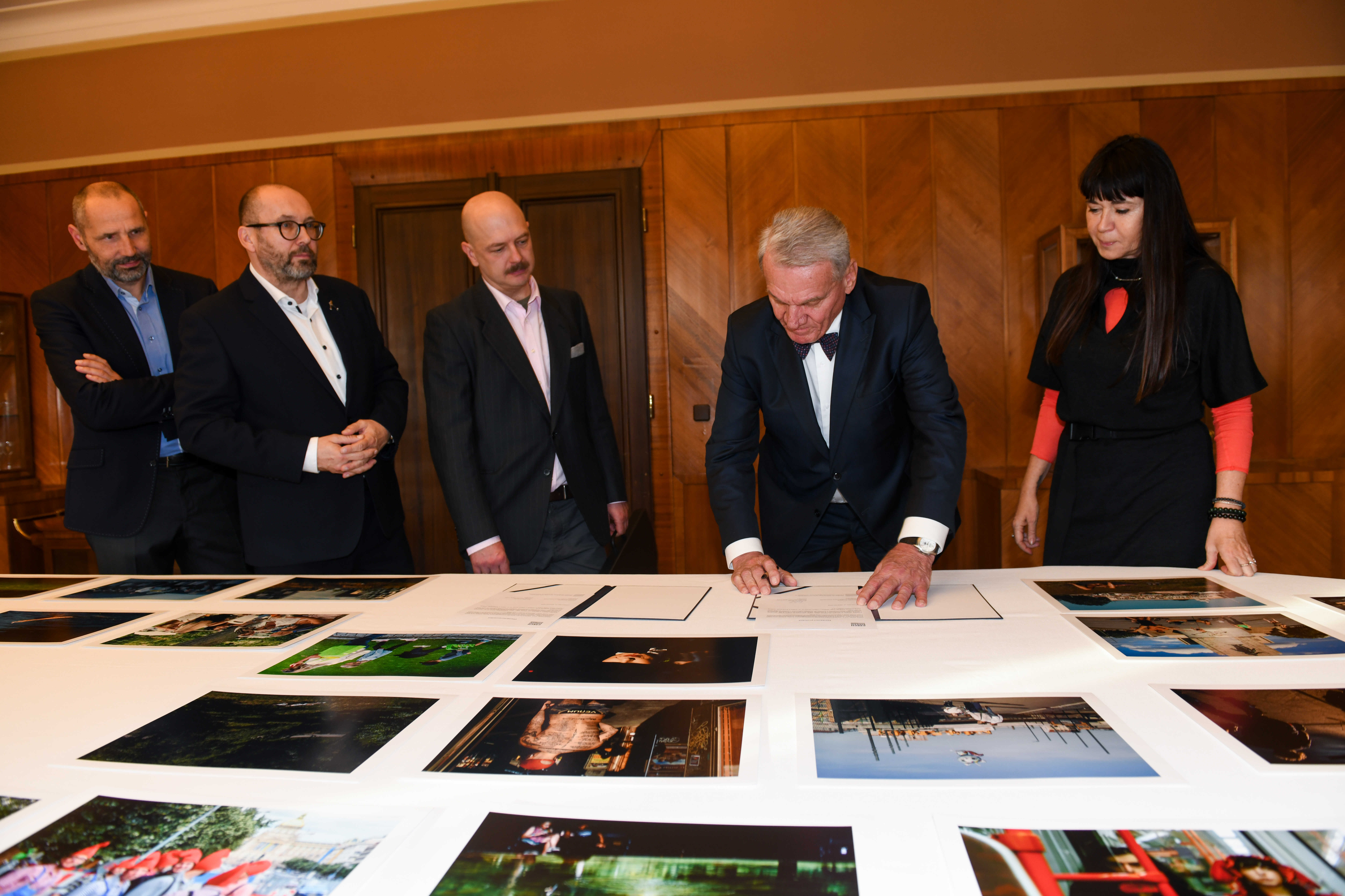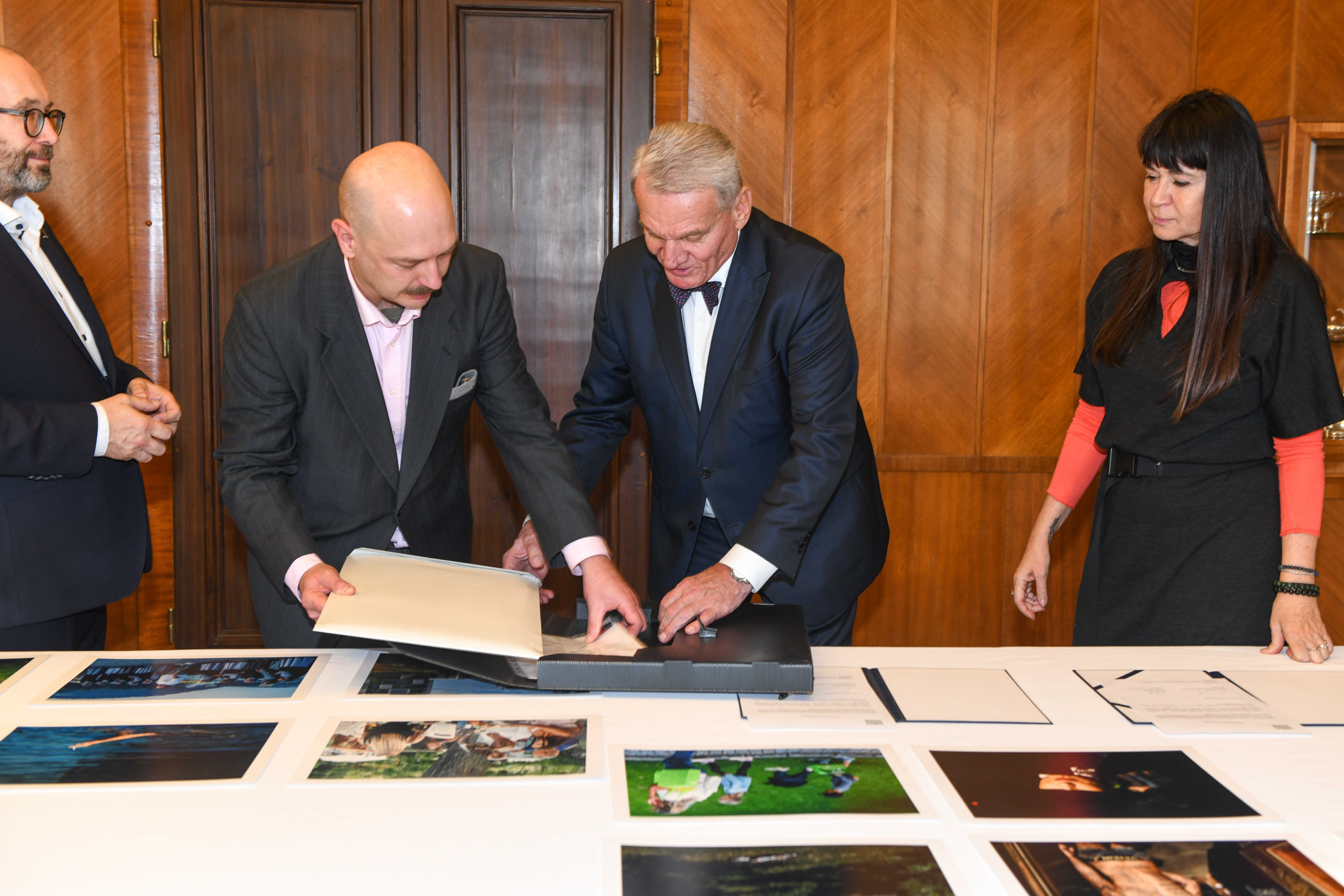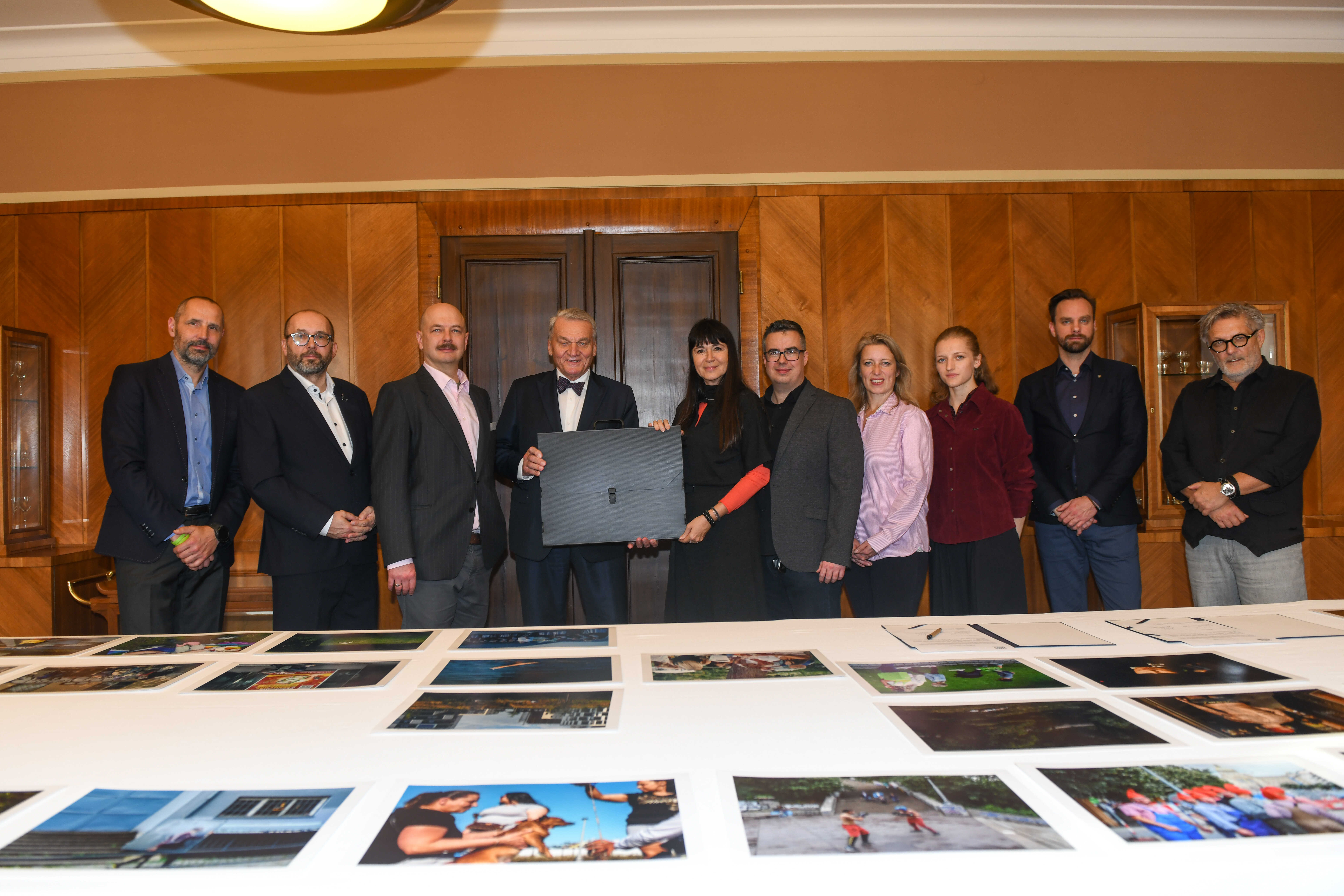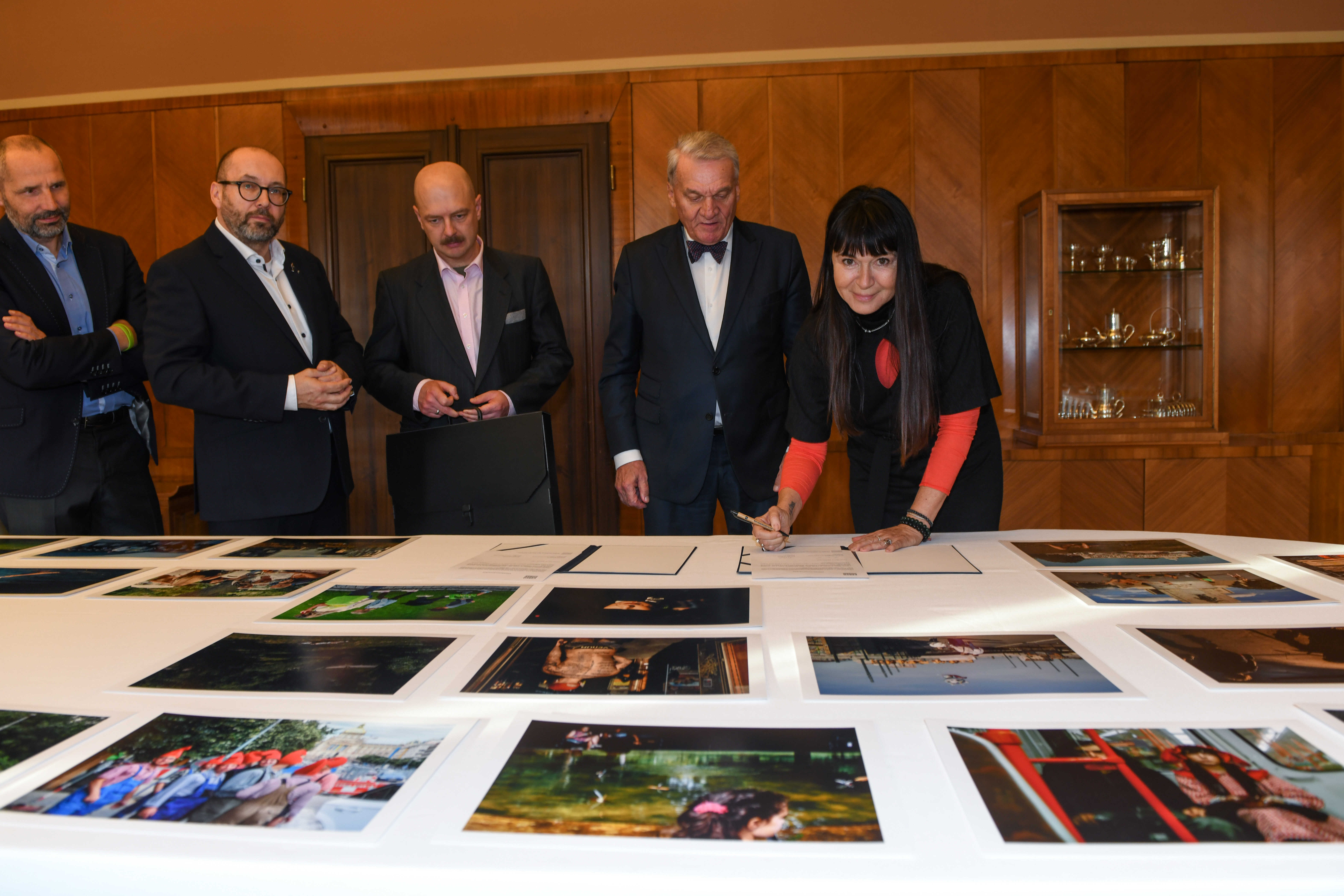 V reprezentativních prostorách rezidence primátora hlavního města Prahy na Mariánském náměstí proběhlo setkání zástupců organizace Czech Photo v čele s její ředitelkou Veronikou Souralovou, vítěze Grantu Prahy 2024, fotografa Petra Topiče z agentury Mafra a.s. a pražského primátora Bohuslava Svobody.