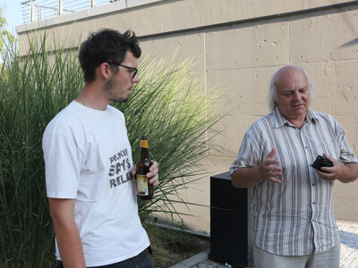 Možná se ptáte, proč Martin při úvodním slovu drží v ruce pivo? Venku bylo 38 stupňů!!!! Díky všem hrdinům – milovníkům fotografie, kteří na vernisáž v tom horku dorazili.