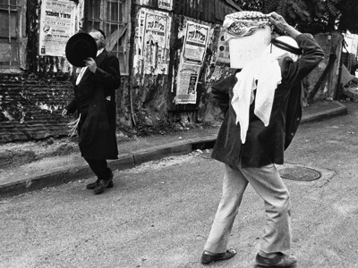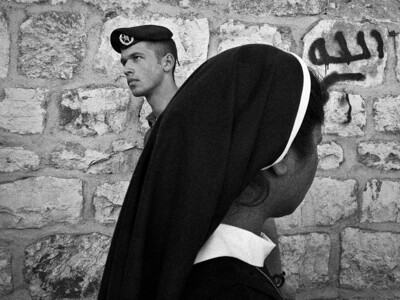 Ajin je šestnáctým písmenem hebrejské abecedy. Jeho numerická hodnota odpovídá počtu 70 let, která letos uplynula od založení Státu Izrael. V hebrejštině i dalších semitských jazycích je ajin současně výrazem pro „oko“ a jako glyf v některých protosemitských abecedách oko také skutečně připomíná. Foneticky je často němé – písmeno, které vidí, ale nemluví. Symbolizuje nejen zrak, ale též prapůvodní světlo stvoření. Těžko si představit příhodnější název pro fotografickou výstavu, zejména jsou-li jejím tématem Izrael a palestinská území.
