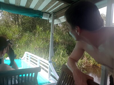 Už několik let jsem nosil v hlavě, že se chci podívat na Kalimantan, dokud je tam je ještě zachovaná část přírody a je možné sledovat orangutany a další druhy ještě ve volné přírodě (pro komentátory a znalce „kteří stáli vedle mě“: gorily opravdu na Borneu nežijí). Cesta byla plánována jako poznávací s tím, že jsme na místě měli domluvené jednotlivé průvodce, kteří nás po dané lokalitě prováděli. Na seznámení s Borneem jsme si vybrali jeden z nejznámějších parků Tanjung Puting, vzhledem k tomu, že se po něm pozorovatelé pohybují na lodi a mohou si tak zastavovat kde chtějí. Loď jsme měli najatou pro nás dva a nebyli jsme součástí žádné skupiny. Už při domlouvání nájmu lodi se průvodce pozastavoval nad tím, proč chceme zde chceme trávit 4 dny, když obvykle všem stačí jedna noc, maximálně dvě noci.