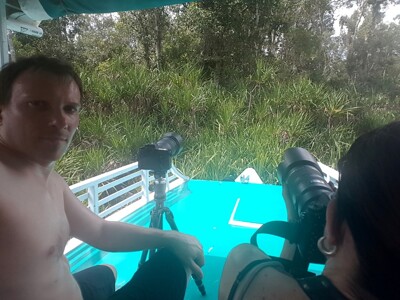 Vítěznou fotografii by tak muselo mít dalších několik lidí, kteří na pozorovacích místech byli s námi a předpokládám, že po zveřejnění výsledků by se dříve nebo později taková fotografie objevila. Zároveň ve filmu uvádím, že trávíme čas sledováním a fotografováním života a jedinců na druhé straně řeky, kde je plantáž – tento fakt je i vidět na záběrech z dronu. Sledovat jedince na druhé straně je mnohem obtížnější, ale díky dostatku času jsme mohli jet po řece pomaleji a opravdu se nám dařilo orangutany nacházet i na této druhé straně. Nebyli ale úplně dobře fotografovatelní a díky občasnému provozu jiných lodí se často stáhli hlouběji do zbytku vegetace podél řeky. Matku s mládětem a nedalekým samcem jsem se snažil najít následně ještě pomocí dronu, ale vidět už nebyli.