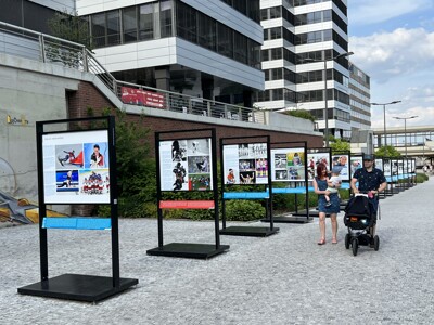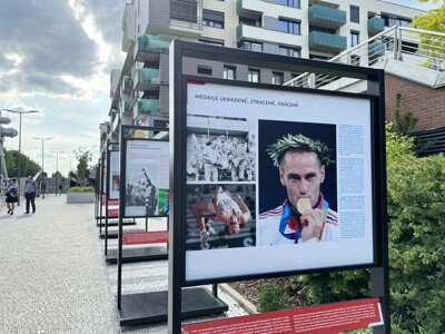 Venkovní expozice nabízí na 15 oboustranných panelech vedle historických snímků i fotografie s úspěchy českých sportovců na poslední letní olympiádě v Tokiu i zimních hrách v Pekingu.
